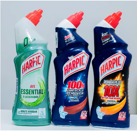 New Harpic Essential is a toilet bowl cleaner with a Biodegradable* formula. Formulated with Citric Acid and White Vinegar, the formula removes limescale, gets rid of tough stains, leaves behind a clean scent, and is EU Ecolabel certified. *Over/More than 99% Biodegradable and Mineral Formula. See Our Harpic Expertise Inside Free From Bleach Cleaning Hero Citric acid gets rid of stains and dirt Helper White vinegar is known to help remove limescale Freshness Booster Eucalyptus fragrance.